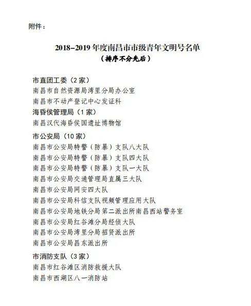 近日,共青团南昌市委、南昌市创建青年文明号活动组委会颁布了《关于命名2018—2019年度南昌市市级青年文明号的决定》(洪青联发〔2021〕17号)。其中,金开集团团委青年突击队被评为2018—2019年度南昌市“市级青年文明号”。