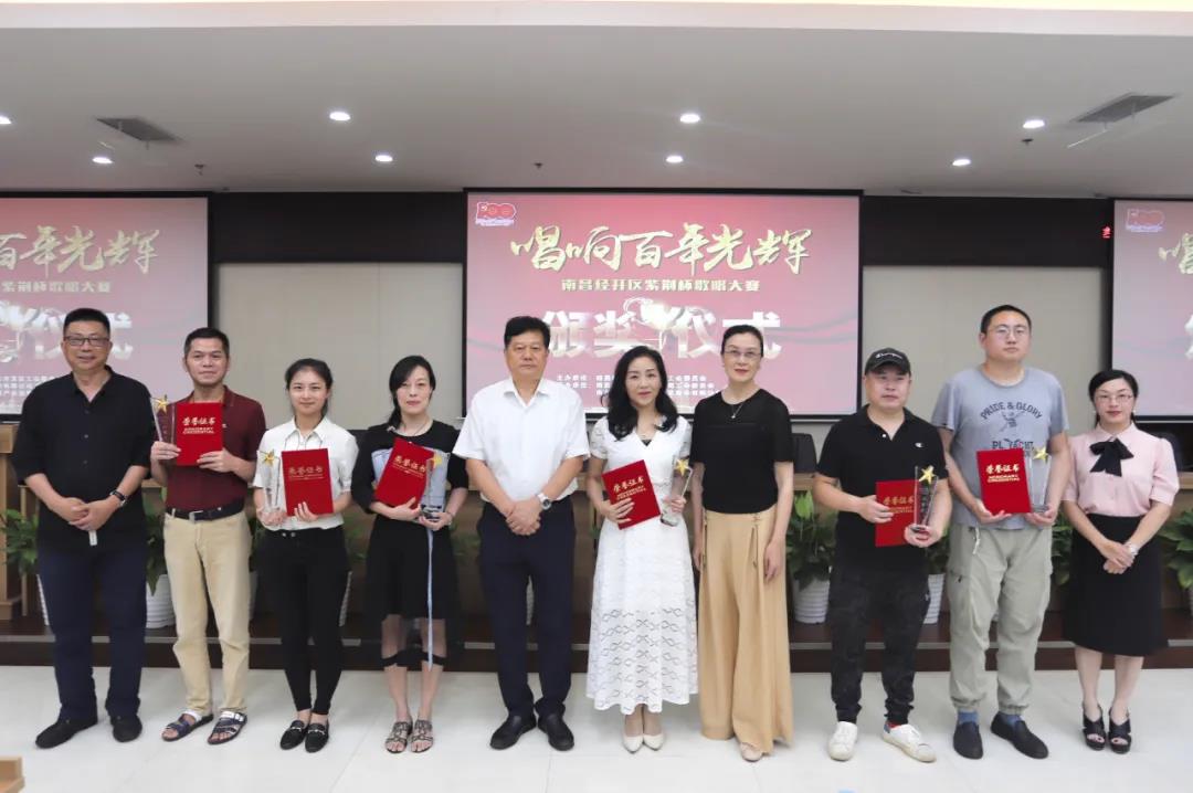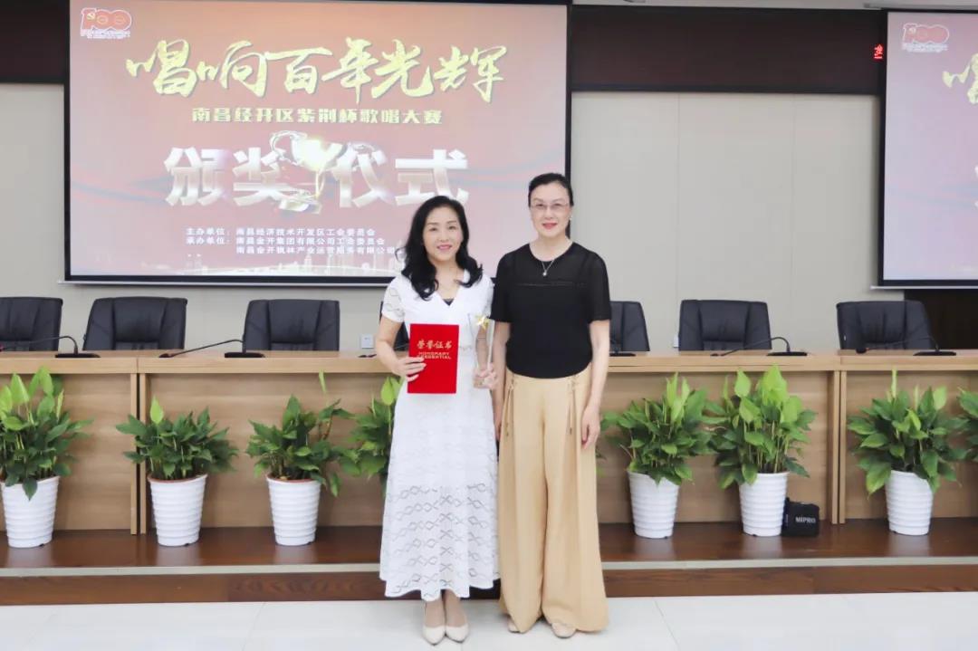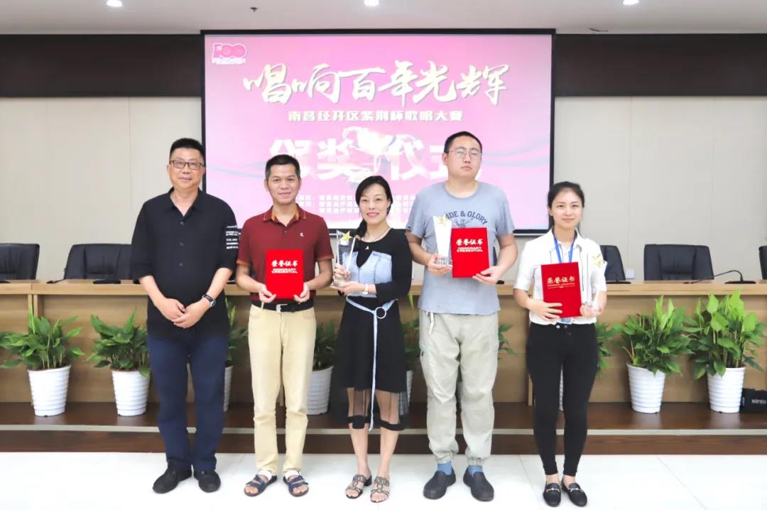 6月28日,南昌经开区紫荆杯“唱响百年光辉”歌唱大赛颁奖典礼在金开集团108会议室举行。区工会主席雷惠珍,集团党委书记、董事长谢荣华,集团党委副书记、副总经理袁扣华分别为获奖选手颁发了荣誉证书和奖杯,此次歌唱大赛正式圆满落幕!